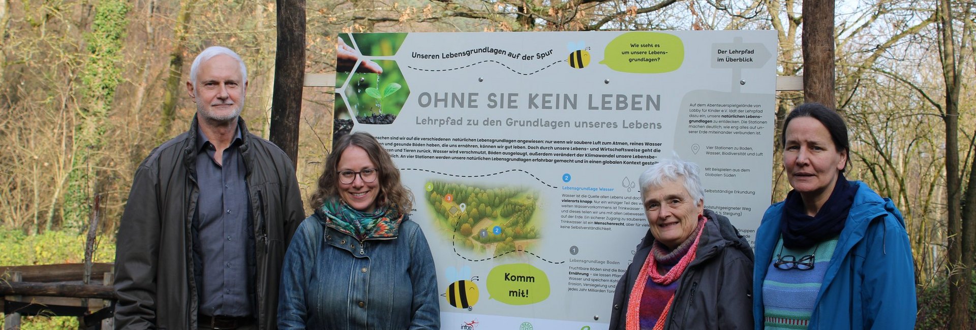 Wo kommen unsere Lebensmittel her? Wieviel Wasser auf der Erde ist zum Trinken geeignet? Was brauchen wir zum Atmen? Der Ackerboden, Wasser, Luft und Biodiversität sind die vier Lernstationen, die Kinder und Jugendliche sind die vier Stationen des außerschulischen Lernorts bei der Kaiserbacher Mühle in Klingenmünster. Zusammen mit dem Referat Globales Lernen, dem Institut für Ökologie und Aktions-Ethnologie und der Fachpromotorin für Klimagerechtigkeit und globale Ressourcen in Rheinland-Pfalz hat der Verein Lobby für Kinder einen Lehrpfad mit vier Stationen erstellt. Schautafeln laden dazu ein, Wissenswertes über unsere Lebensgrundlagen zu erfahren, weisen aber auch darauf hin, wie durch unsere Lebens- und Wirtschaftsweise die Vielfalt an Pflanzen und Tieren zurück geht, Wasser verschmutzt und Böden ausgelaugt werden. Beispielprojekt und Geschichten aus dem Globalen Süden zeigen jedoch Möglichkeiten, wie wir nachhaltig mit dem umgehen können, was die Natur uns zur Verfügung stellt.